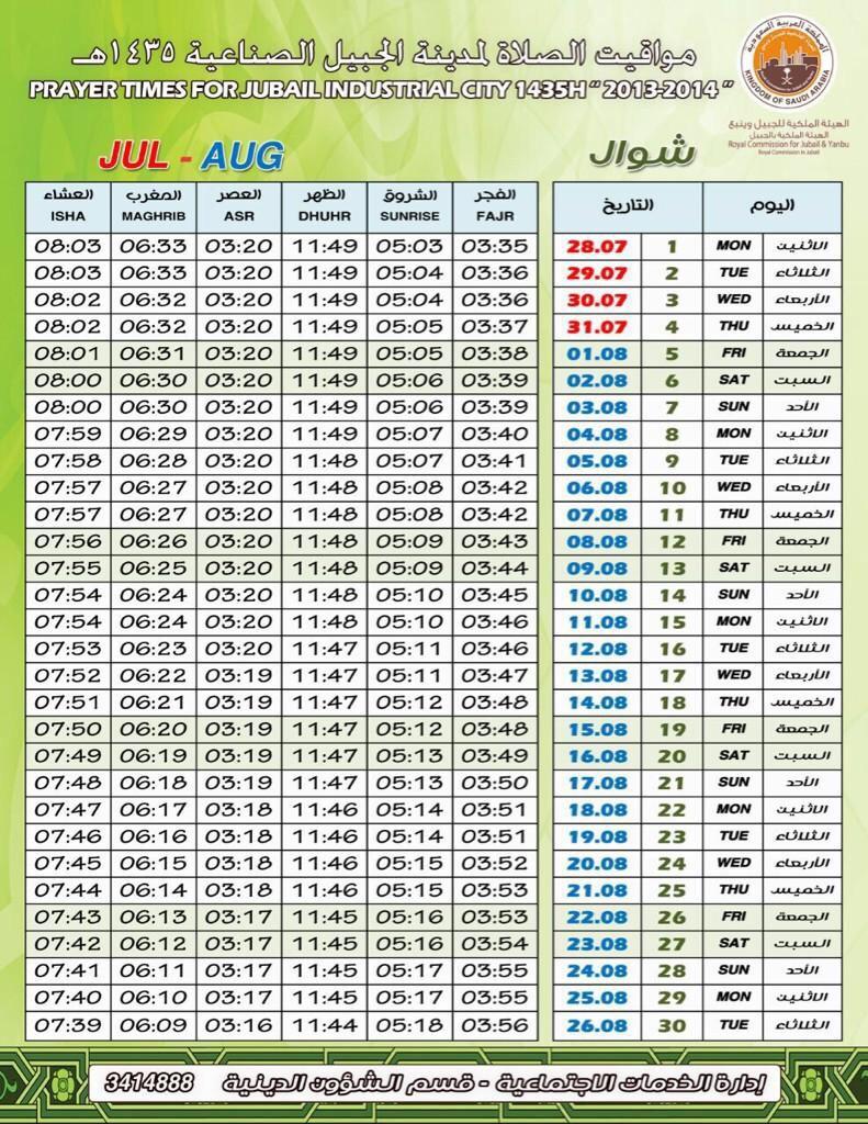 مواقيت الصلاة لمدينة المنطقة الشرقية,الجبيل الفجر :